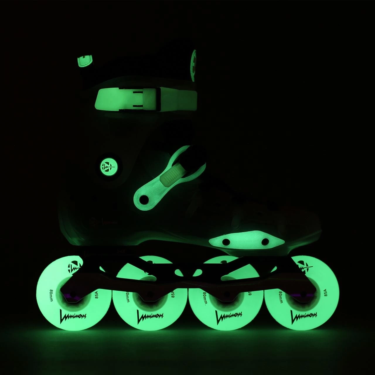 Wheels:Â Luminous White Glow 80mm/85a Wheels, Sizes 36 to 41. Luminous White Glow 84mm/85a Wheels, Sizes 42 to 46