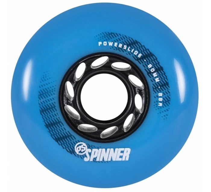 Set of 4 Powerslide Spinner Blue Wheels in 80mm 88a. Spinner wheels make a great replacement or upgrade set of wheels, coming in fairly hard at 88a they roll fast and are nice and durable.
